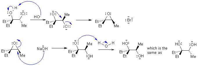 Since we don't have racemisation it can't be SN1, so it must be SN2. In order to get overall retention, this could indicate 2 sequential SN2 reactions. The process is that the 1,2-halohydrin forms an epoxide via an intramolecular SN2 displacement of chloride, followed by ring opening of the epoxide under basic conditions via another SN2 reaction.